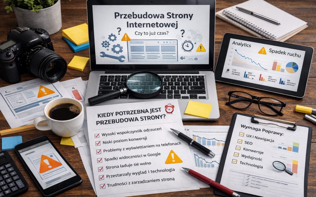 Przebudowa strony internetowej jest potrzebna wtedy, gdy strona przestaje spełniać swoją rolę: nie prowadzi użytkownika do celu, nie buduje zaufania, nie wspiera marketingu i sprzedaży, jest trudna w utrzymaniu albo technologicznie ogranicza rozwój. Najlepszym podejściem jest traktowanie strony jak produktu: mierzyć, analizować, poprawiać fundamenty i projektować pod realne intencje użytkownika. Jeśli widzisz kilka sygnałów jednocześnie, przebudowa to często najszybsza droga do odzyskania skuteczności i przewagi konkurencyjnej.